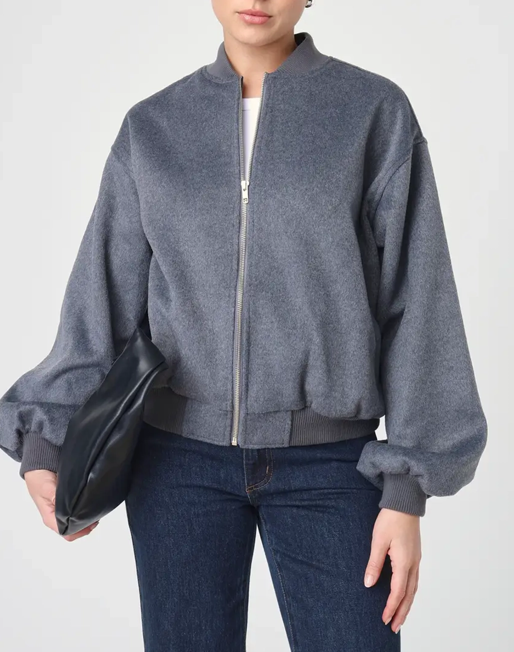 This cosy bomber jacket features a wool blend fabric, a full length and zip through front with a chunky fit.